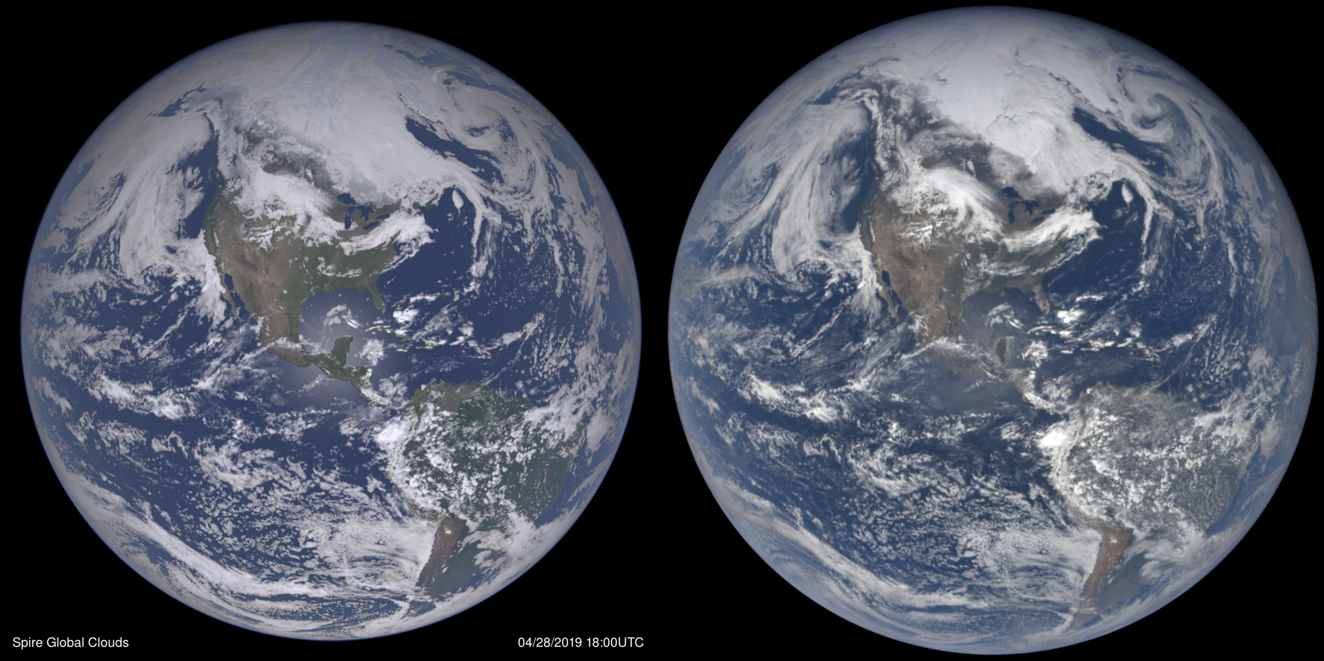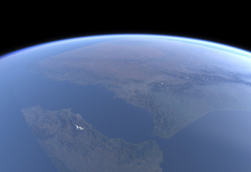 Here are two simulated views from the 400km altitude of the International Space Station.