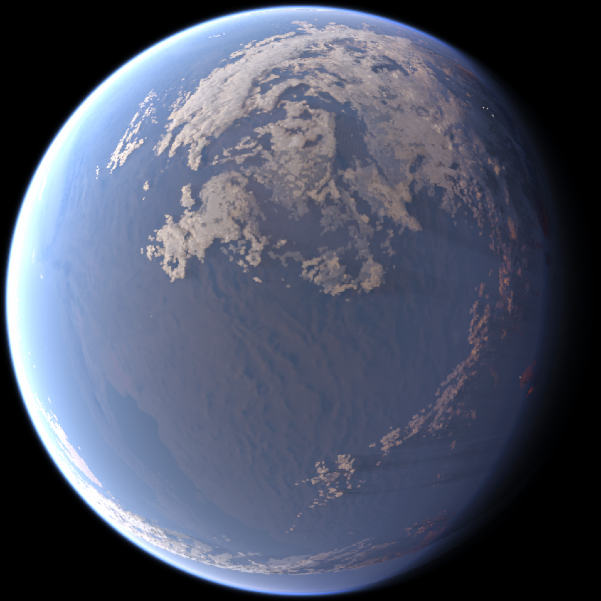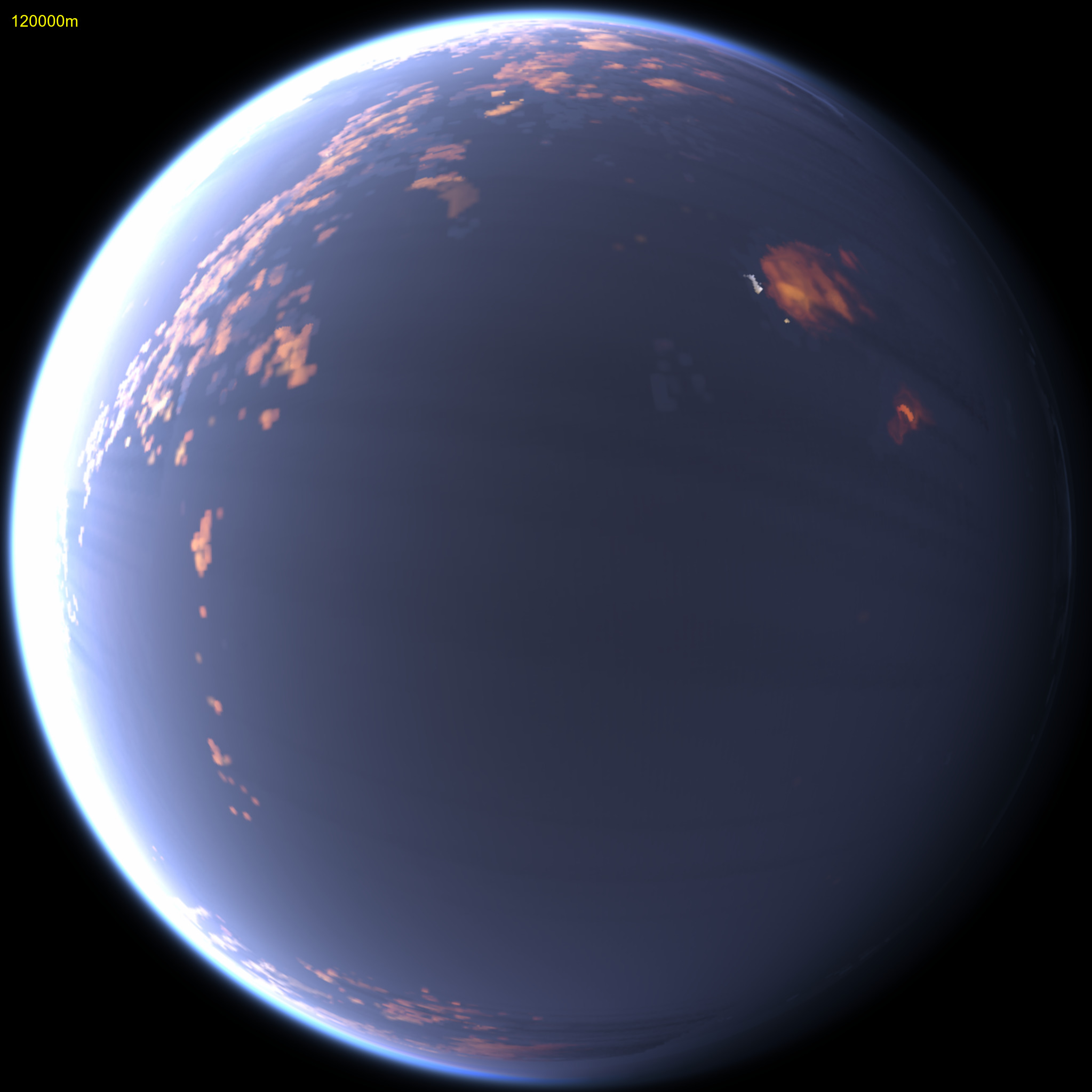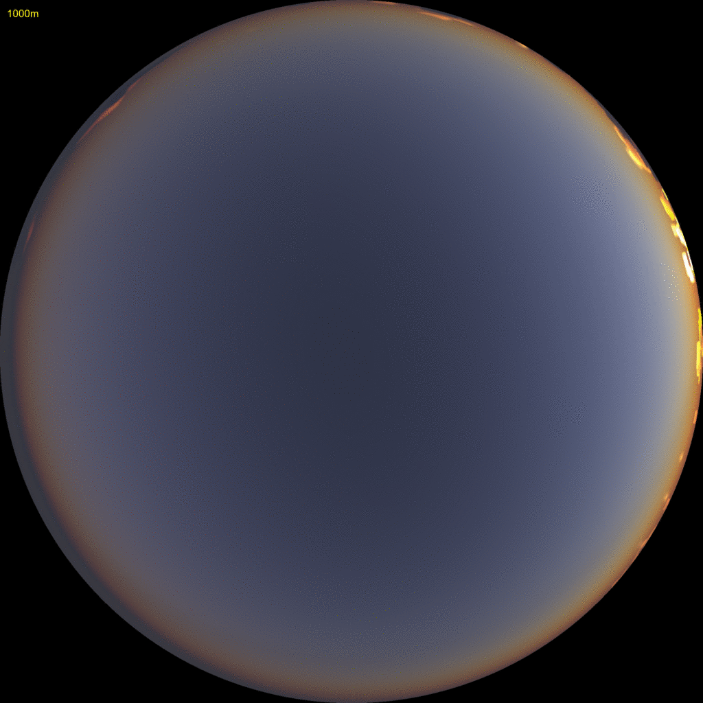 An example shown above is just after sunrise from 200km altitude. This considers lighting