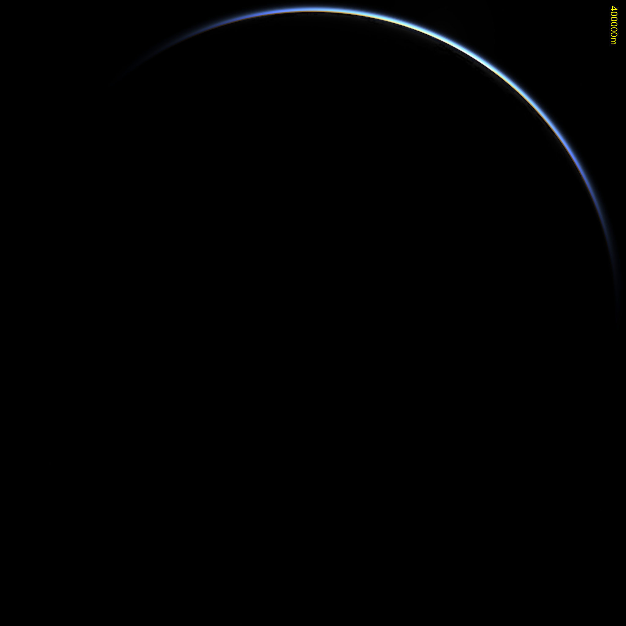 This view from 200km altitude better shows the airglow, assuming it is a horizontally uniform shell. Twilight is underway with