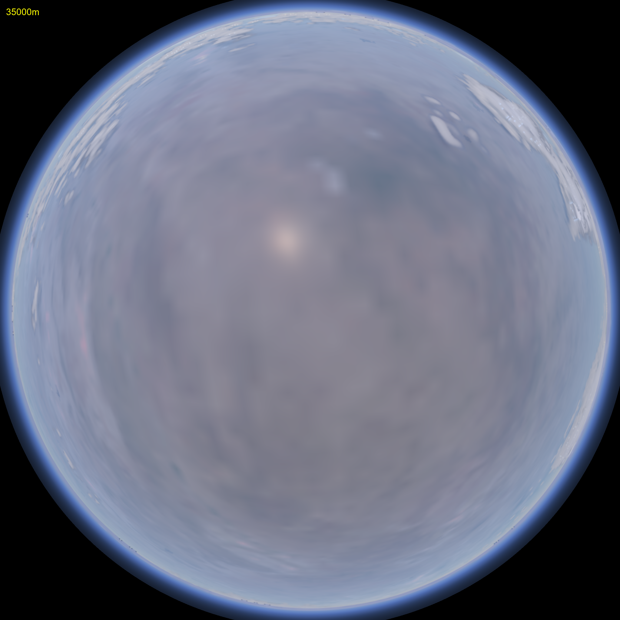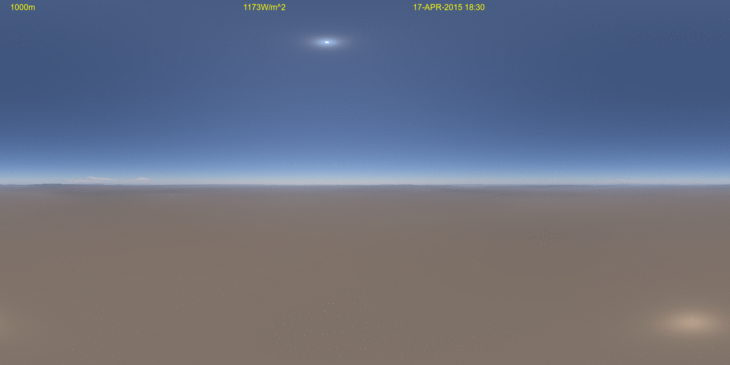 Simulated view of launching from Earth with a high sun angle. Altitude in meters