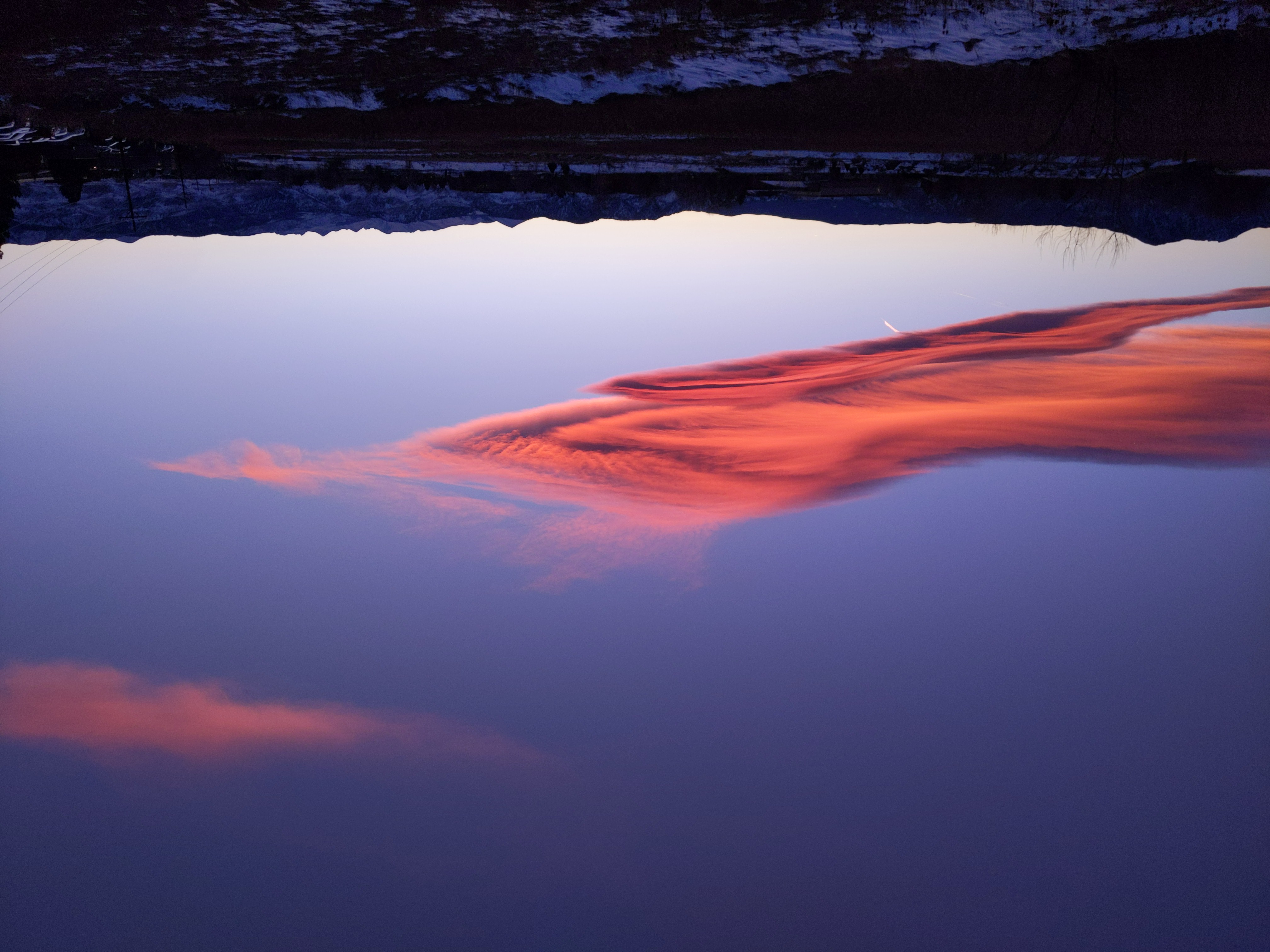 Above is a cropped twilight view from a rural mountain location with the sun about 15 degrees below the horizon.