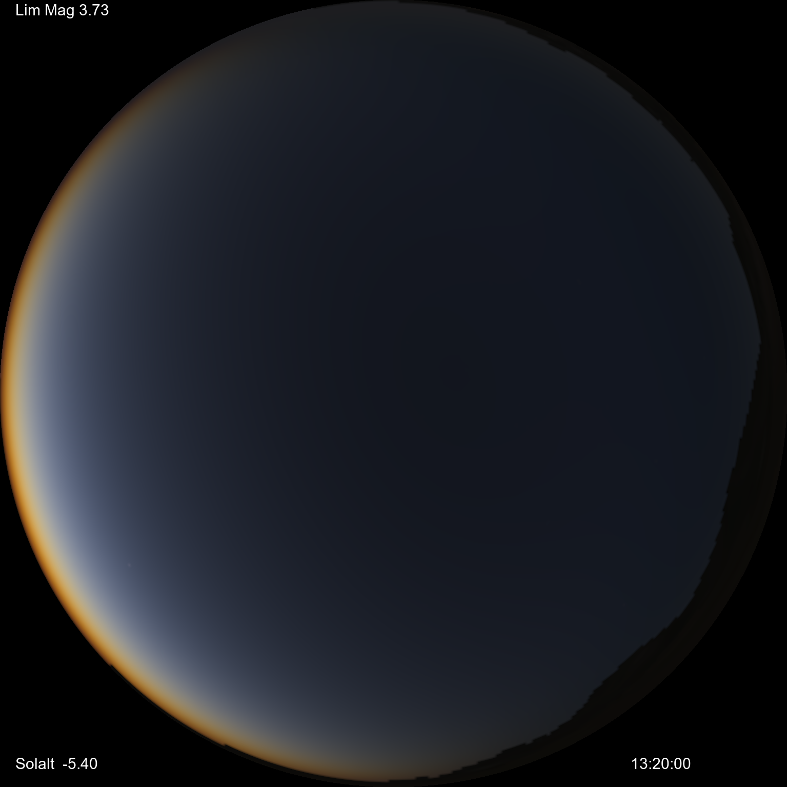 Evening twilight simulation with an SEA of -3.3 degrees.